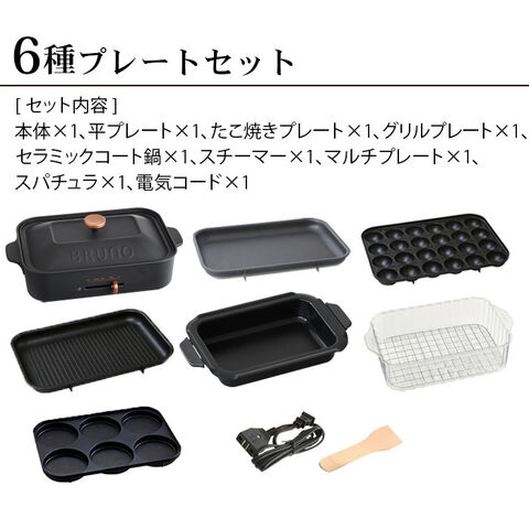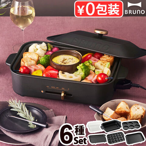 【特典付】ブルーノ コンパクトホットプレート 本体&6種プレート BRUNO Hot Plate ≪キャストブラック(深鍋CB) BOE021≫2~3人用 たこ焼き スチーマー 焼肉 鍋 家電 結婚祝い おしゃれ 蓋