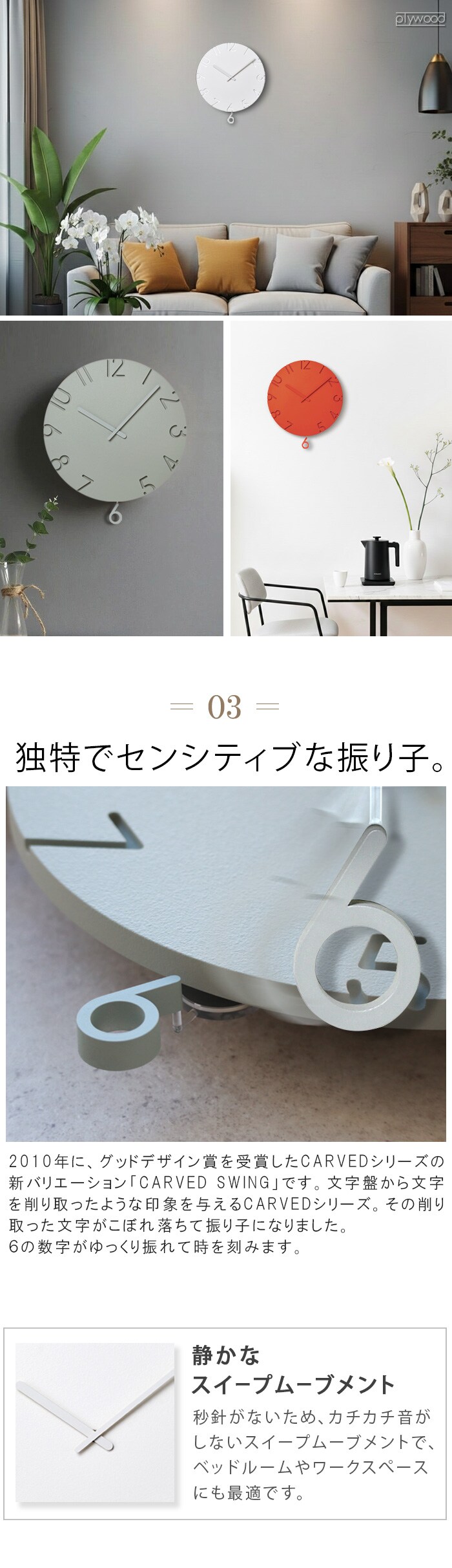 タカタ レムノス カーヴド スウィング TAKATA Lemnos CARVED SWING ≪ホワイト NTL15-11≫ 振り子時計 木製 北欧 スイープ 静音 掛時計 リビング 寝室 グッドデザイン賞受賞 寺田 尚樹 シンプル モダン デザイン 新生活 引っ越し祝い