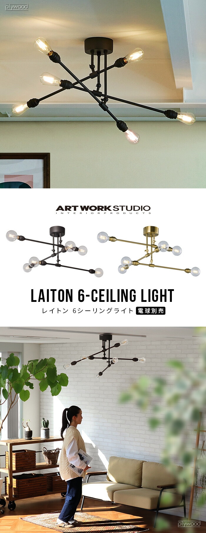 アートワークスタジオ レイトン6シーリングライト ART WORK STUDIO Laiton 6 ceiling light ≪ゴールド AW-0631Z≫ 天井照明 おしゃれ リビング 照明器具 真鍮 LED対応 レイアウト インテリア 角度調整 6灯 回転 シーリングライト