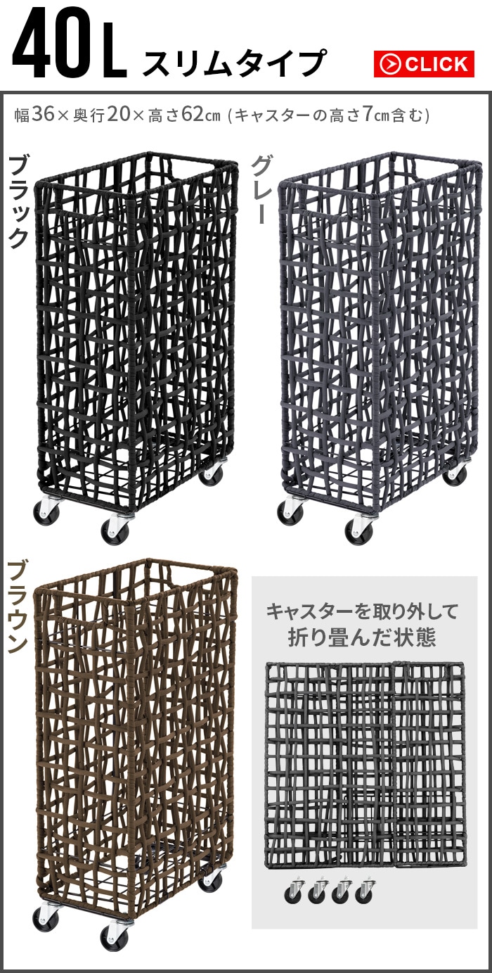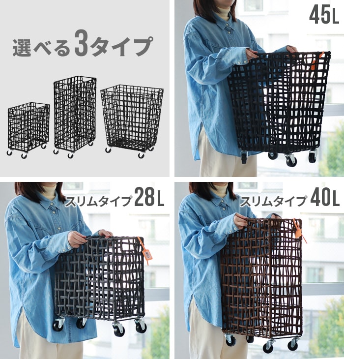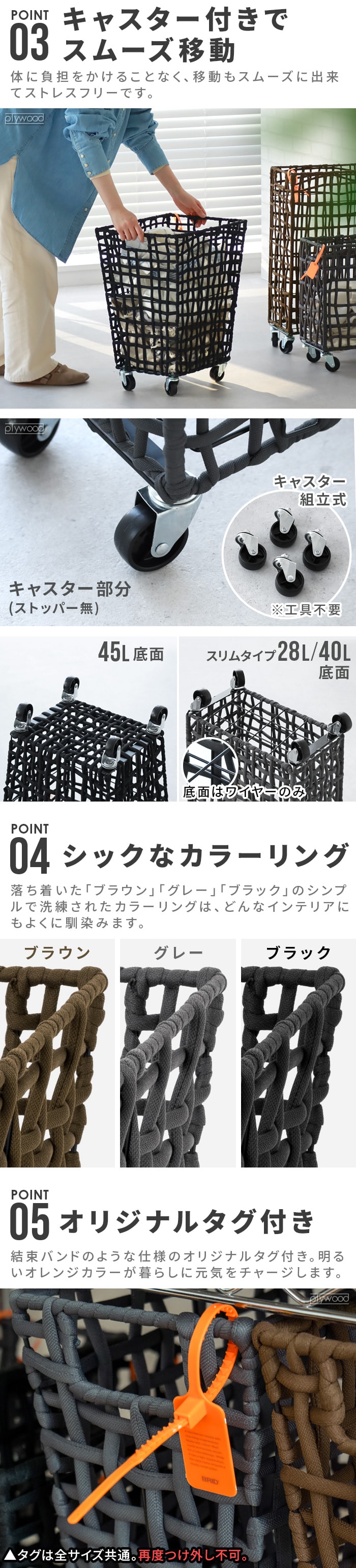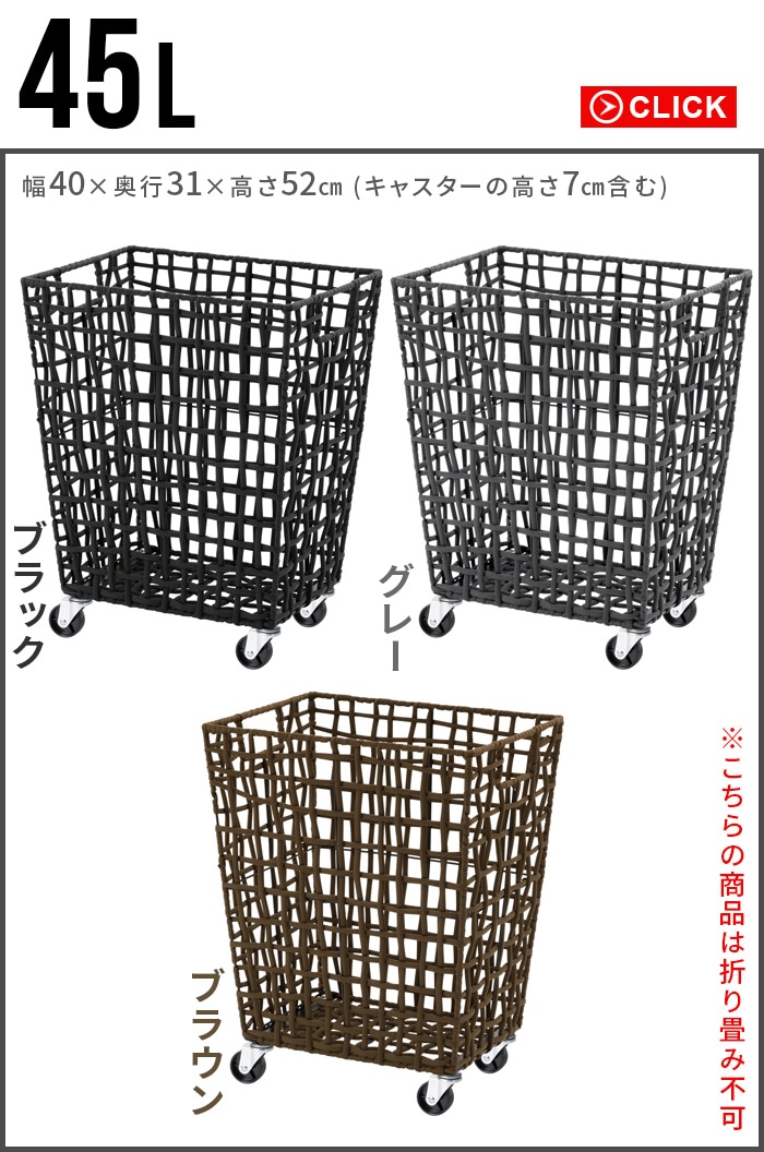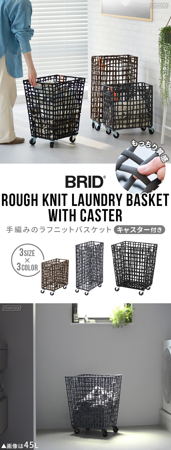 BRID ROUGH KNIT LAUNDRY BASKET with CASTER 45L ≪ブラック≫ ブリッド 洗濯かご 大容量 ランドリーバスケット キャスター 布製 ワイヤー 折り畳み不可 ワゴン 洗濯物入れ 脱衣かご 収納ケース 持ち手 ボックス おしゃれ