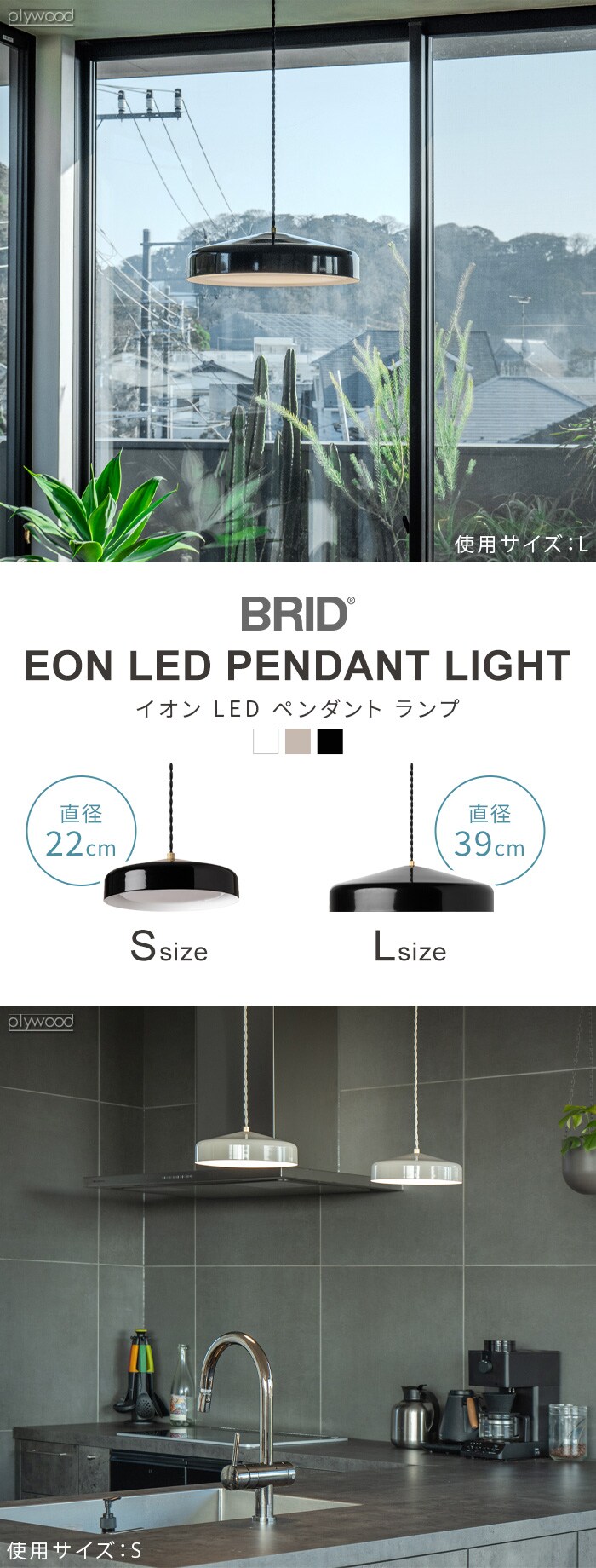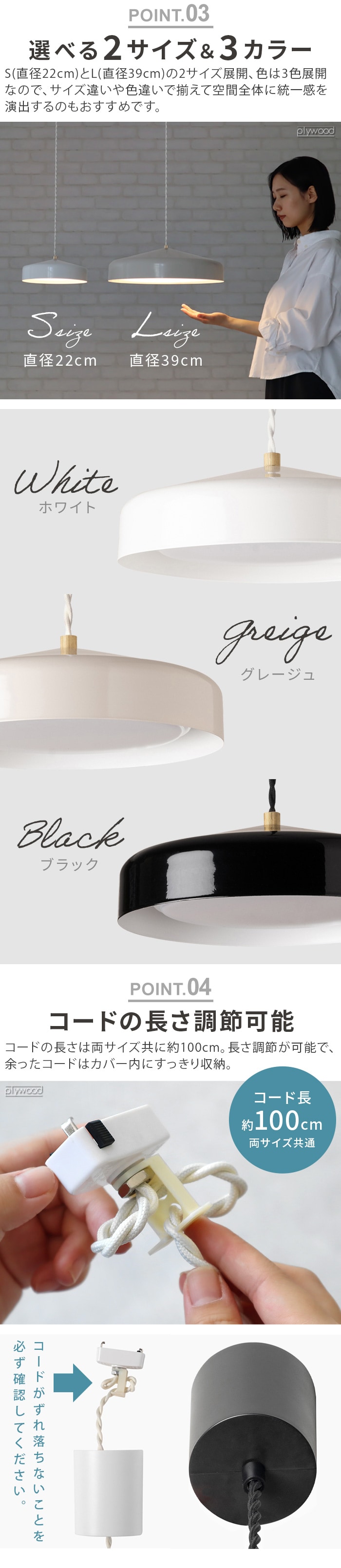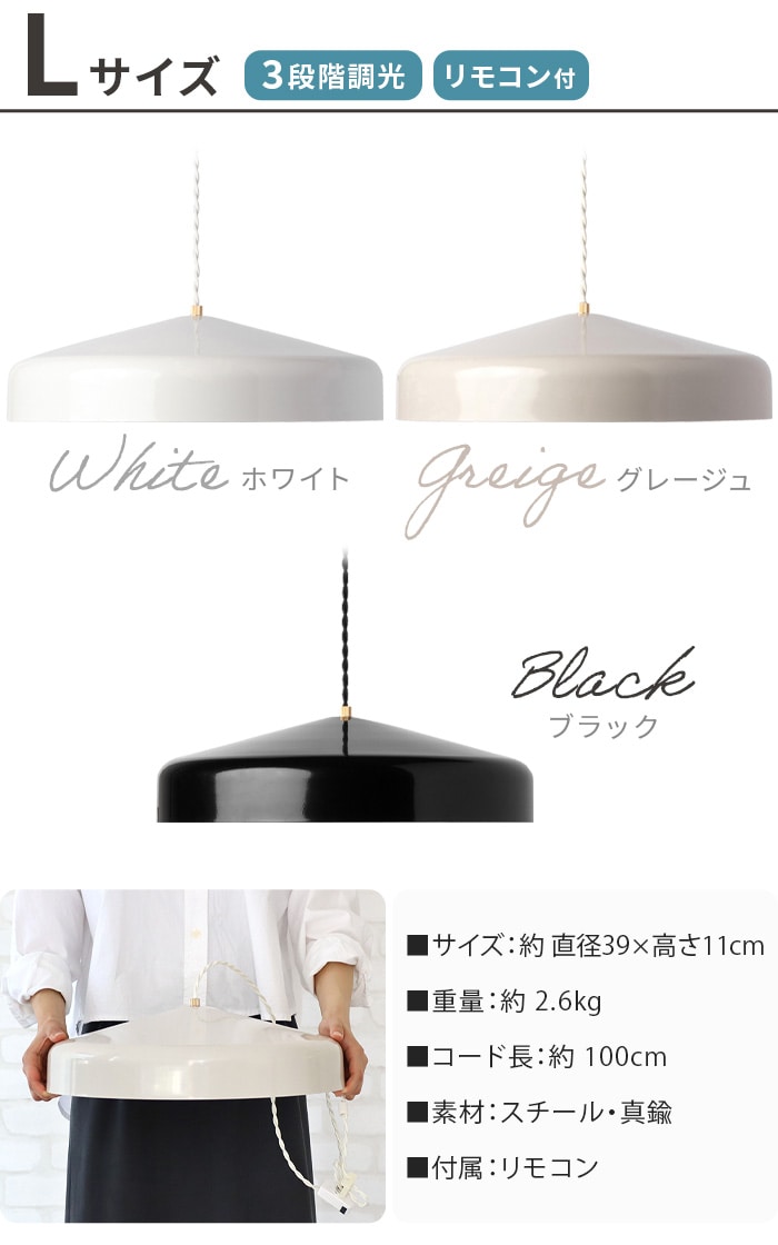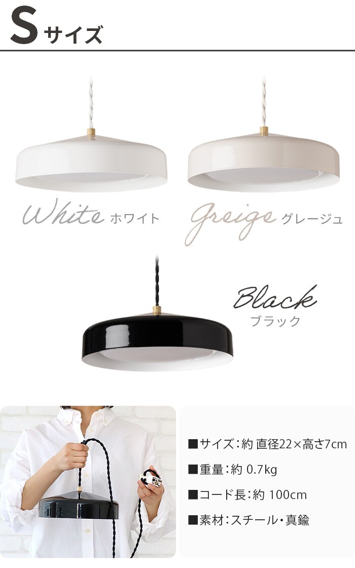 | Sサイズ:(約)直径22×高さ7cm Lサイズ:(約)直径39×高さ11cm コード:約100cm (両サイズ共通/コード長さ調節可能) |