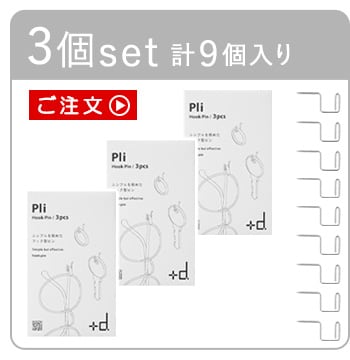 +d Pli 3pcs Hook Pin プラスディー プリ フックピン 2個セット (計6個入り) ≪ブラック≫ 画鋲 ステンレス 日本製 押しピン 壁掛け 収納 DIY 壁面 錆びにくい カレンダー アクセサリー 写真掛け ディスプレイ シンプル コの字 リビング キッチン 水回り