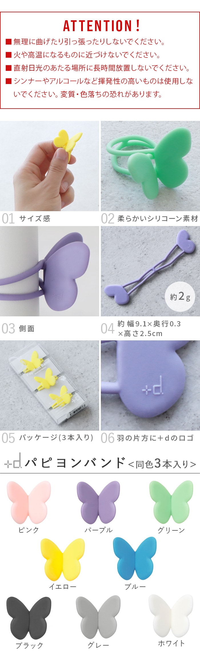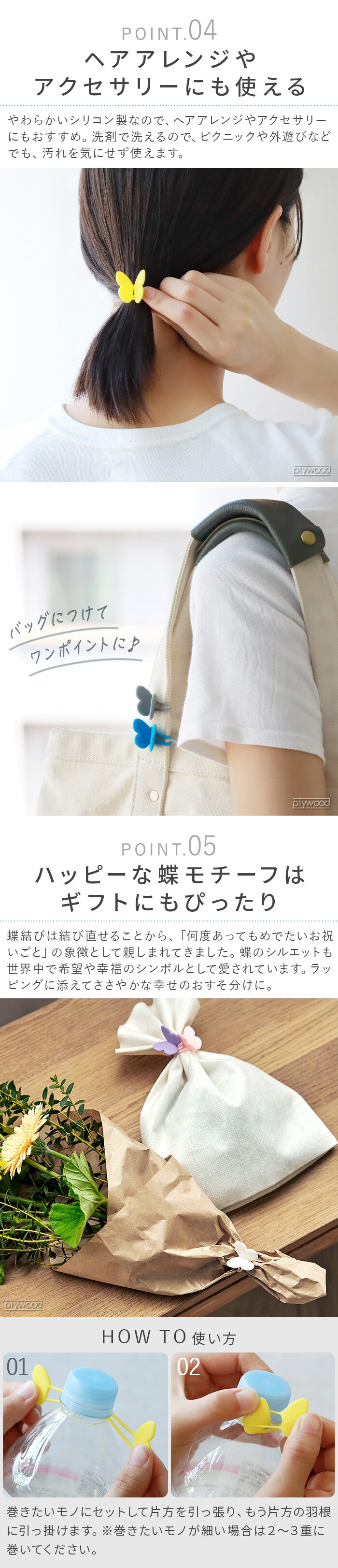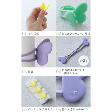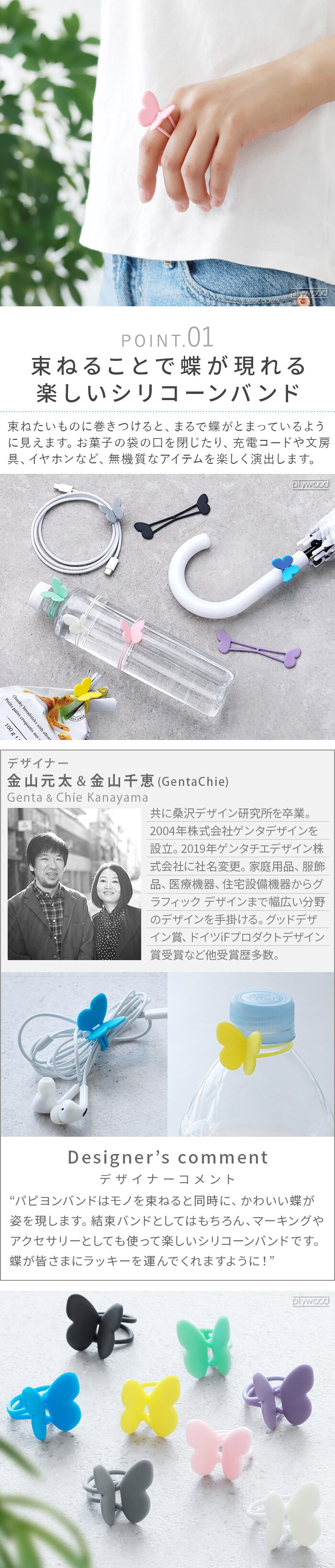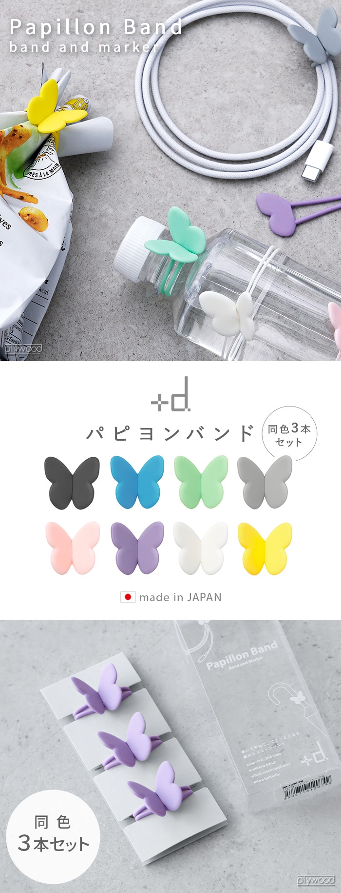 +d パピヨンバンド Papillon Band ≪イエロー DA-1420≫ 結束バンド めじるしアクセサリー シリコン 目印 かわいい おしゃれ 蝶 ケーブルクリップ まとめる 結ぶ 便利 多機能バンド コード 袋 収納 束ねる 整理 チョウチョ