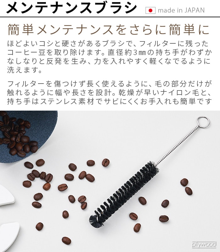 セラポッタ cerapotta メンテナンスブラシ ≪DP-012≫ コーヒーフィルター用 ナイロン毛 ブラシ ステンレス お手入れ簡単 乾燥しやすい 傷つきにくい 洗いやすい 洗浄道具 取り除く セラミックフィルター用 水洗い 掃除道具 衛生的 生活雑貨 キッチン用品 掃除用品