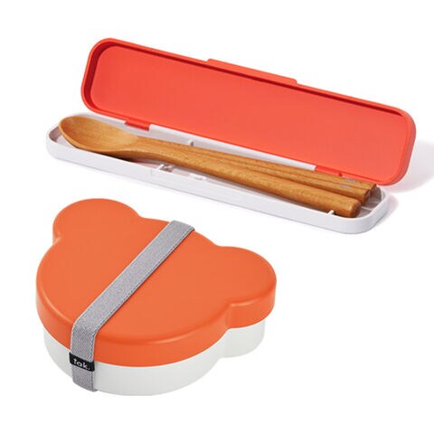 tak. KIDS DISH ランチボックス ベア JTN-0170 + ランチ カトラリーセット JTN-0152 ≪オレンジ+カトラリーセット≫ 弁当箱 子供 1段 おしゃれ 携帯用箸 スプーン 保冷 保温