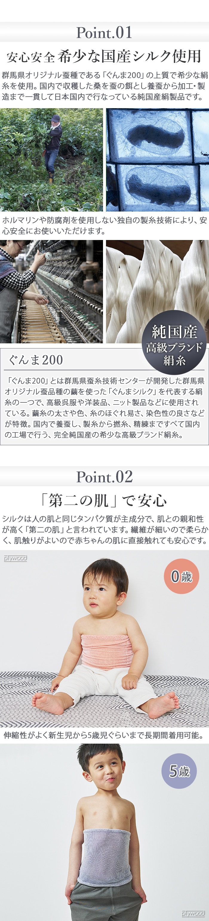 上州絹屋 シルキーハラマキ for baby ≪グレー JSKNT017≫ 腹巻き 子供用 シルク キッズ ベビー かわいい ぐんま200 コットン 絹 インナー 薄手 おすすめ おしゃれ 日本製 代謝up あったか 冷え取り ヘアバンド 赤ちゃん ギフト 出産祝い