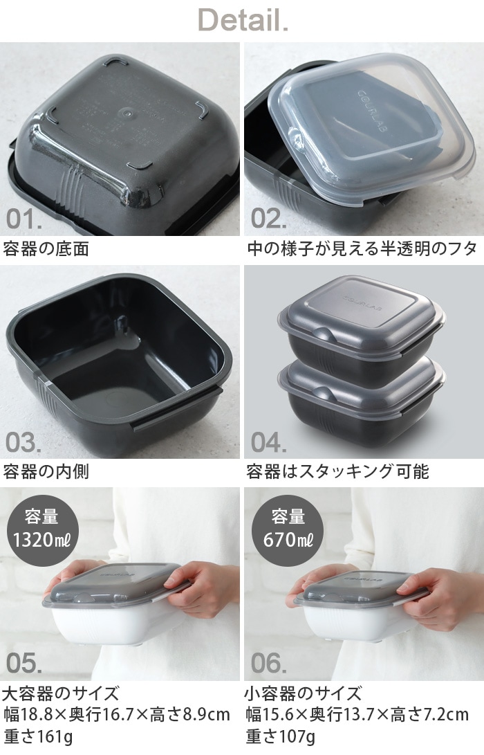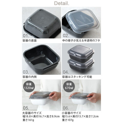 | 大容器:1320ml 小容器:670ml スクエアディッシュ:900ml |