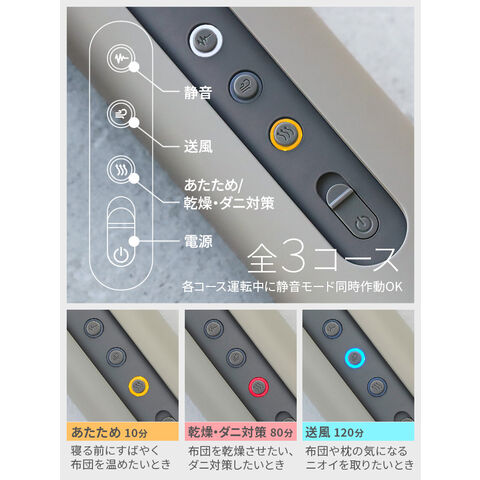 | 送風コース 120分間運転 乾燥・ダニ対策コース 80分間運転 あたためコース 10分間運転 |