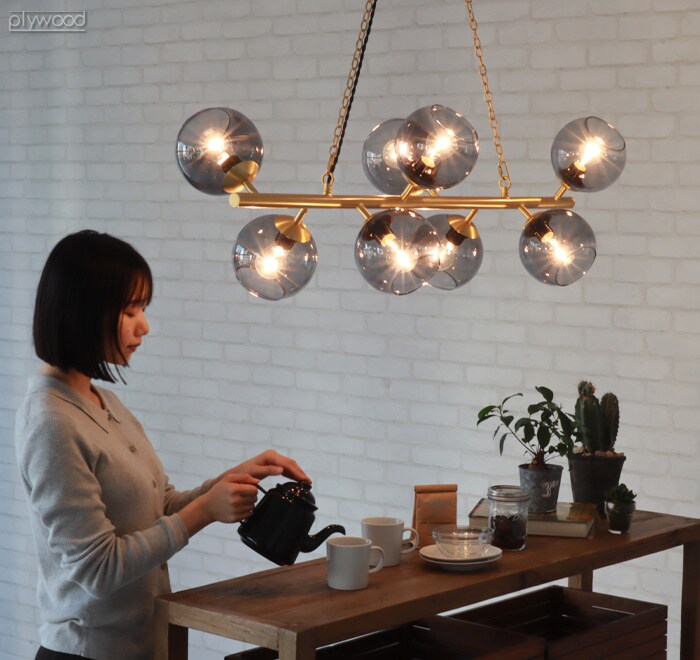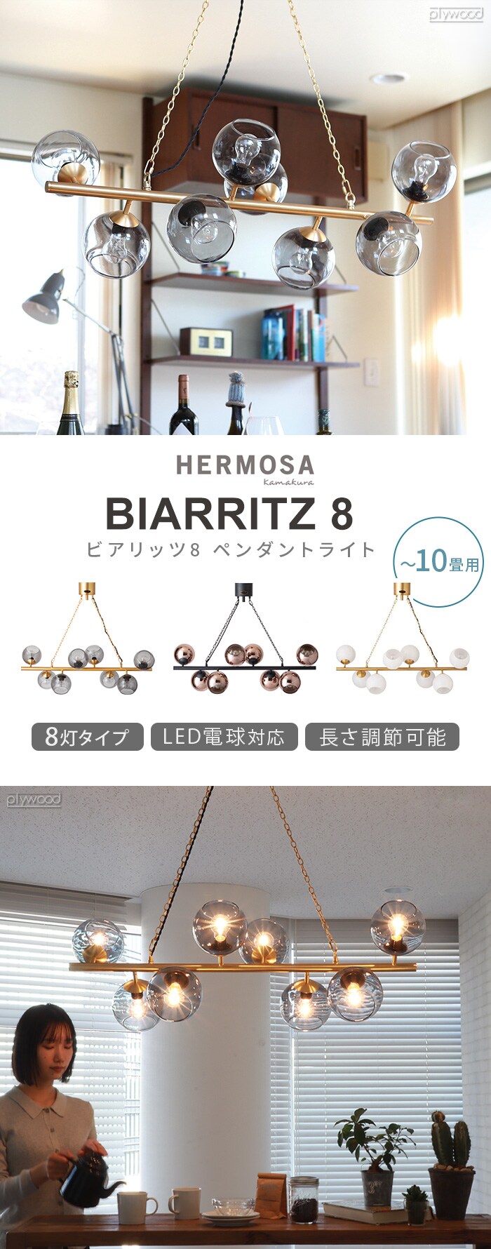 ハモサ ビアリッツ8 ペンダントランプ HERMOSA BIARRITZ 8 ≪GOLD/GRAY≫ ペンダントライト ガラス 丸 ダイニング 電球付き 天井照明 アンティーク E26 LED対応 おしゃれ 北欧風 10畳まで