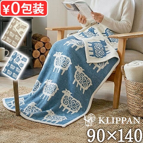 KLIPPAN クリッパン シュニールコットン ハーフブランケット ≪ブルー KP112802≫ ひざ掛け 90×140 北欧 洗える 軽量 高級 膝掛け おしゃれ 寝具 オーガニックコットン ギフト プレゼント