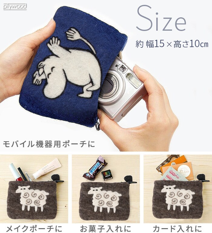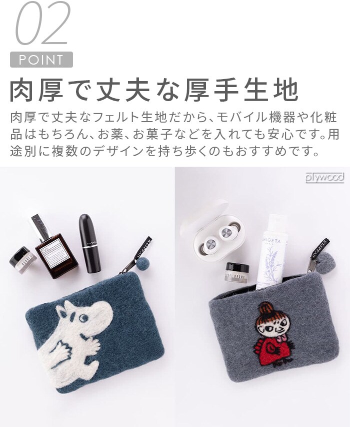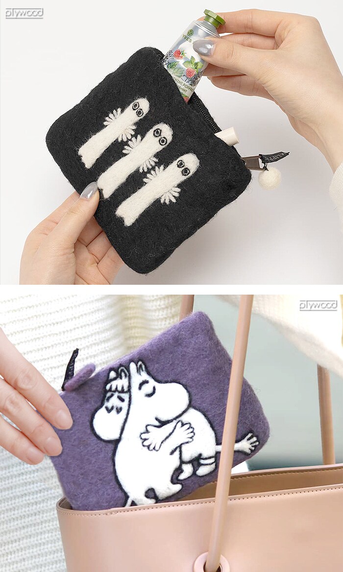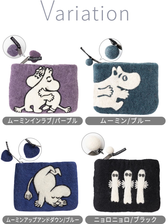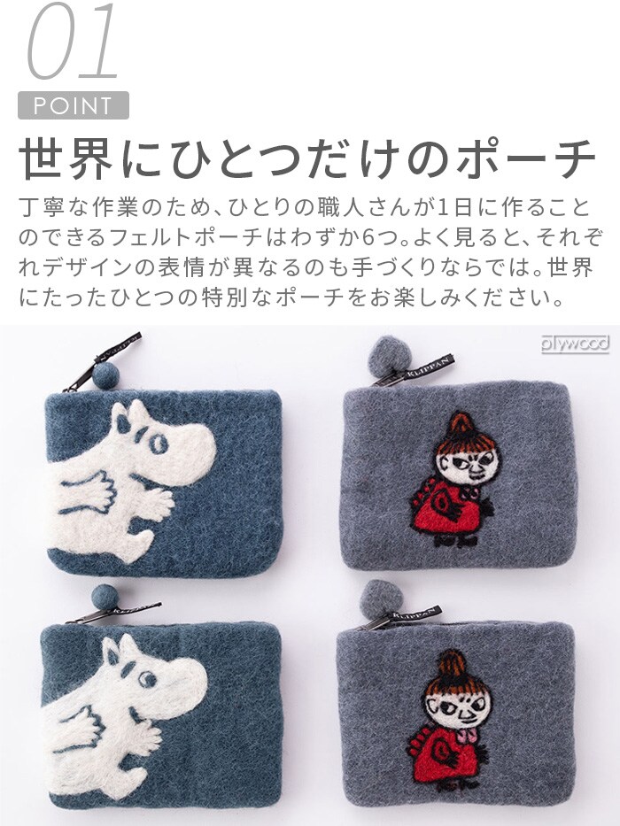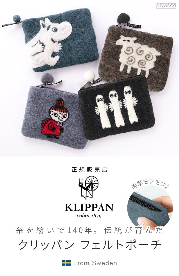 KLIPPAN クリッパン フェルトポーチ 数量限定 ≪ムーミン/ブルー≫ ポーチ かわいい 小物入れ ハンドメイド ミニポーチ かわいい 北欧 雑貨 もこもこ フェルト ムーミン ミイ ミィ 黒 グレー 赤