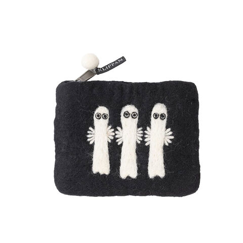 KLIPPAN クリッパン フェルトポーチ 数量限定 ≪ニョロニョロ/ブラック≫ ポーチ かわいい 小物入れ ハンドメイド ミニポーチ かわいい 北欧 雑貨 もこもこ フェルト ムーミン ミイ ミィ 黒 グレー 赤