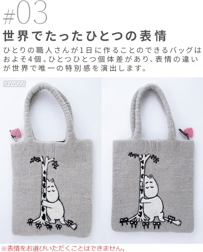![]() 世界にひとつだけの表情。 あなただけの フェルトバッグ クリッパンの人気柄がフェルトバッグになりました。昔ながらの手工芸、繊細な技術によるウール100%の生地は、ひとつひとつ丁寧な手作業で作られ、絵柄も生地と同じウールを使ってハンドメイドで仕上げられています。肉厚でもこもこの心地よい肌触り。ハンドメイドなので、少しずつ表情に個性があり、あたたかみのあるフェルトバッグに仕上がっています。 ![]() ![]() ![]() ![]() ![]() ![]() ![]() ![]() ![]() ![]() ![]()