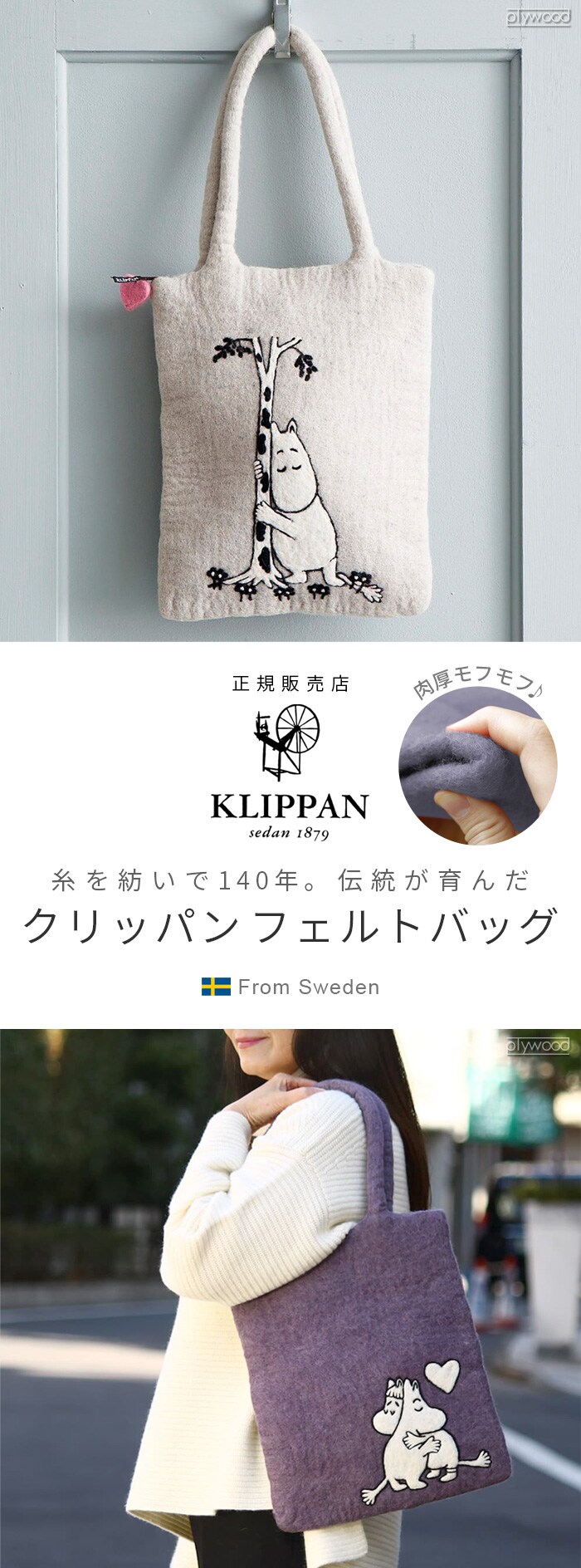 KLIPPAN クリッパン フェルトバッグ 数量限定 ≪ムーミンインラブ≫ トートバッグ ファスナー付き レディース A4 ipadケース 北欧 ムーミン ウール100% かわいい おしゃれ プレゼント