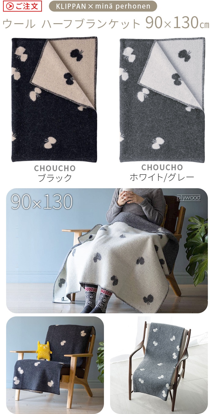 クリッパン ウールミニブランケット 65×90cm KLIPPAN × mina perhonen ≪CHOUCHO/ブルーグリーン KP893074≫ ひざ掛け かわいい おしゃれ 北欧 膝掛け ウール100% 蝶々 鳥 皆川明 ギフト プレゼント 寒さ対策 オフィス あったか 母の日