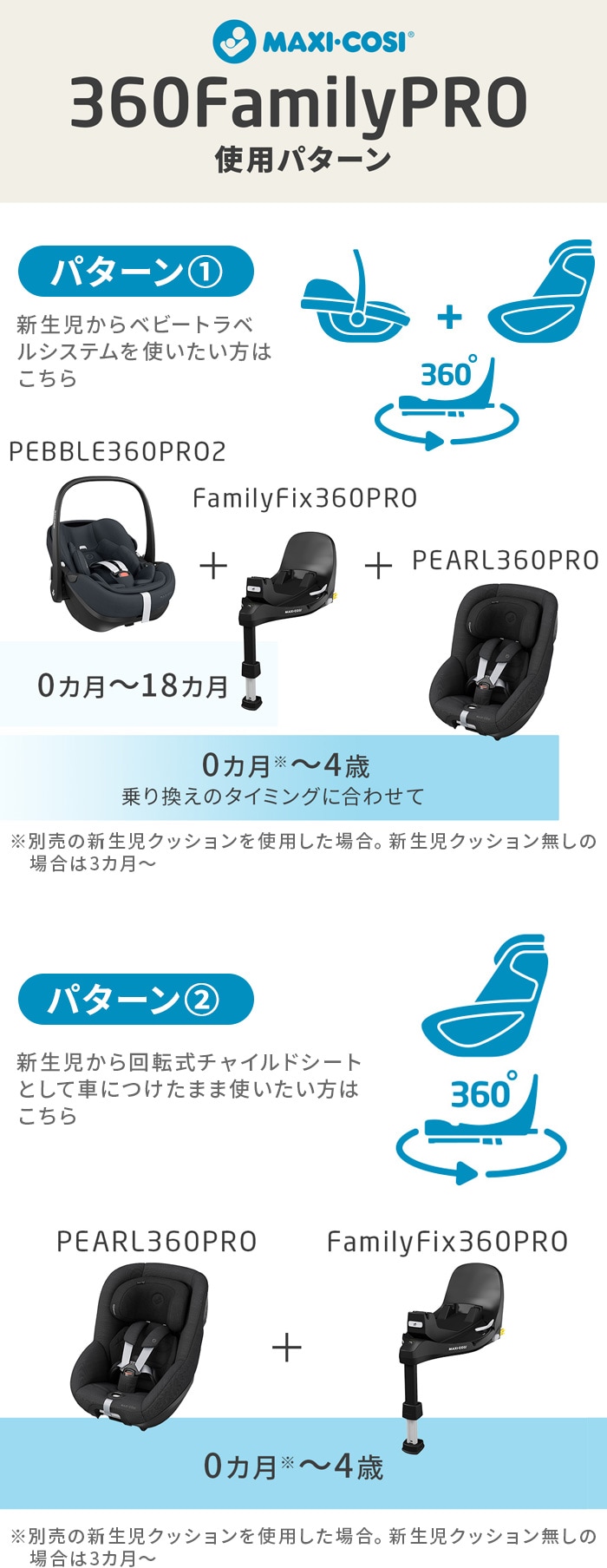 | MAXI-COSI PEBBLE 360 PRO2 本体×1 ※こちらはベビーシートのみの販売になります。車載専用ベースメント「FamilyFix 360」「FamilyFix 360 Pro」は別売りです。 |