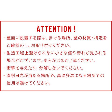 | 壁面に設置する際は、掛ける場所、壁の材質・構造をご確認の上、お取り付けください。