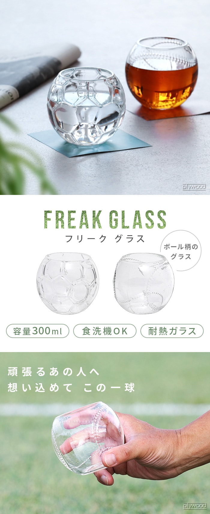 フリーク グラス FREAK GLASS ≪フットボール≫ 300ml おしゃれ サッカーボール 透明 クリア ガラス コップ カップ コースター スポーツ おもしろ雑貨 メッセージカード付き ギフト プレゼント