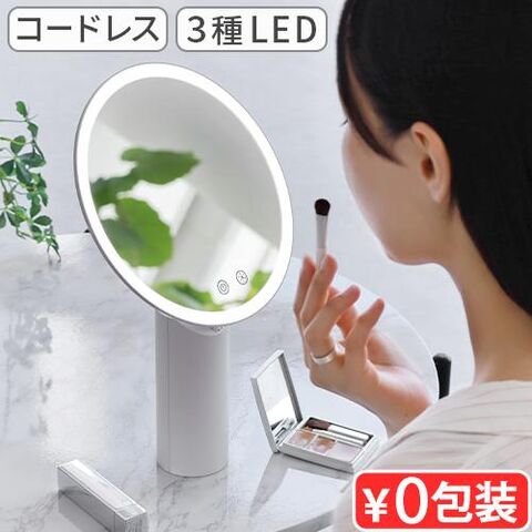 ムーンライトミラー MOONLIGHT MIRROR ≪ホワイトスターライト 25711≫ 卓上鏡 3色LED ライト付き おしゃれ 高さ調整 女優ミラー 省エネ シンプル 角度調整 コードレス 充電式 メイクミラー 丸型 ギフト