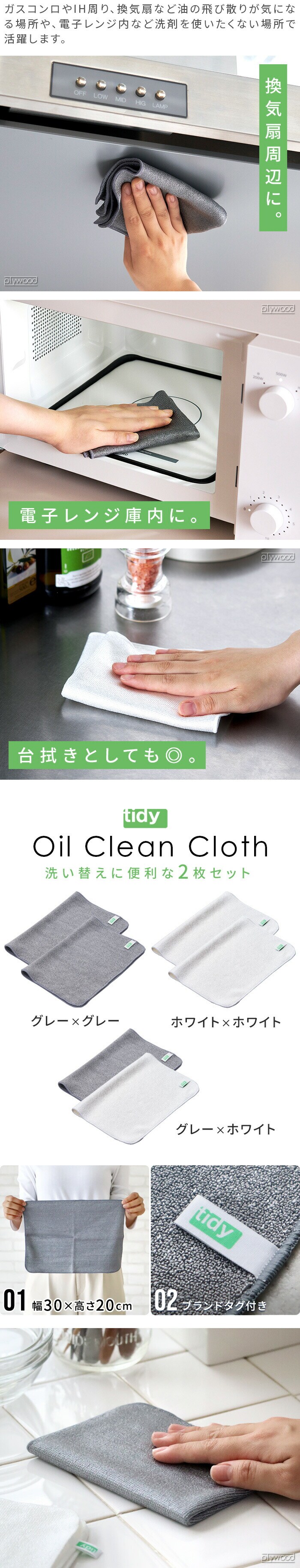 ティディ オイルクリーンクロス 2枚セット tidy Oil Clean Cloth ≪グレー×ホワイト≫ 油汚れクロス キッチンダスター 布巾 ふきん 台拭き おしゃれ 日本製 電子レンジ ガスコンロ IHコンロ お掃除