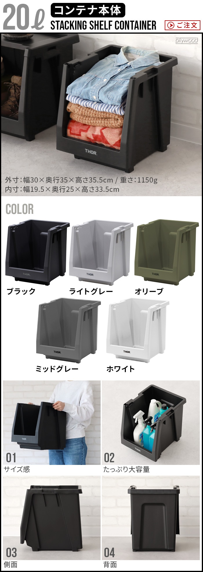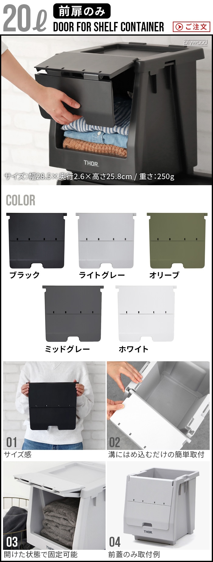 ソー ドアー フォー シェルフ コンテナ THOR DOOR FOR SHELF CONTAINER [20L/前扉] 本体別売り ≪ホワイト 369820WH≫ 収納ボックス ドア スタック 棚 おしゃれ プラスチック 前開き 重ねられる カスタム 屋外 キッチン 衣類 ケース