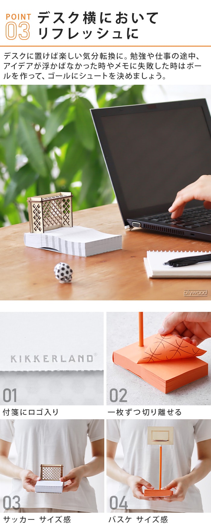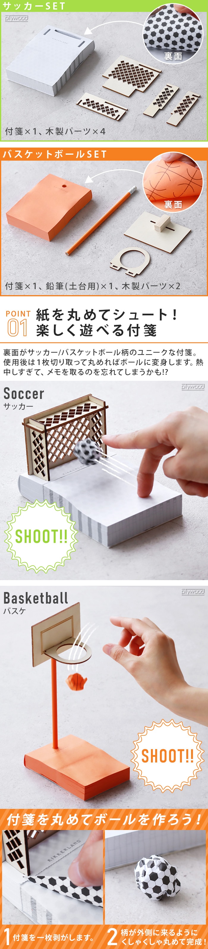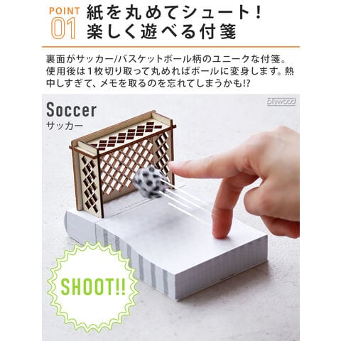 楽しく遊べるユニークな付箋 裏面がボールの柄になっているユニークな付箋。丸めるとサッカーボール/バスケットボールに変身!アイデアが浮かばなかった時やメモに失敗した時はクシャクシャに丸めてボールを作って、ゴールにシュートを決めましょう。シュートが決まるまで熱中しすぎると、メモを取るのを忘れてしまうかも!?サッカー、バスケなどスポーツ好きな方へのギフトにもぴったり。 |