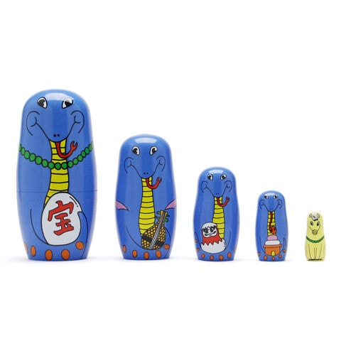DETAIL × MIDORI KOMATSU マトリョーシカ ≪HappyNewSnake 3415HAS≫ 猫 招き猫 犬 動物 人形 5個組 コマツミドリ インテリア 置物 オブジェ 木製 かわいい シュール イラスト ポップ おもしろ 雑貨 ギフト プレゼント