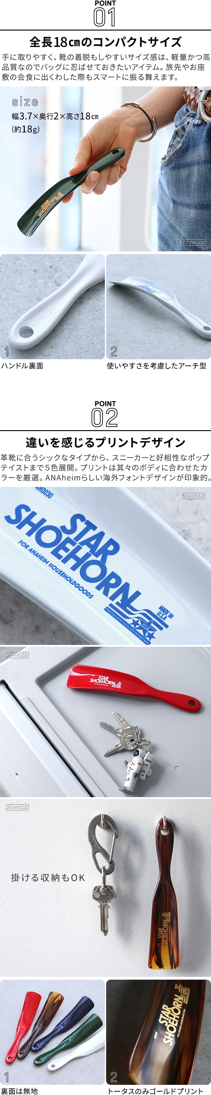 アナハイム スター シューホーン ANAheim STAR SHOEHORN ≪ホワイト 3713WH≫ 靴べら コンパクト アメリカ製 アメリカン 海外テイスト 日用品 雑貨 軽量 高品質 出張 旅先 持運び 携帯 女性 男性 ミニ 短め 革靴 スニーカー