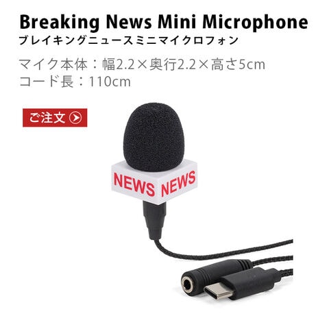| [Plug & Play Microphone] (約)直径1.8×高さ2.5×コード長さ110cm [Breaking News Mini Microphone] (約)幅2.2×奥行2.2×高さ5×コード長さ110cm |