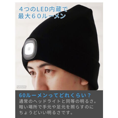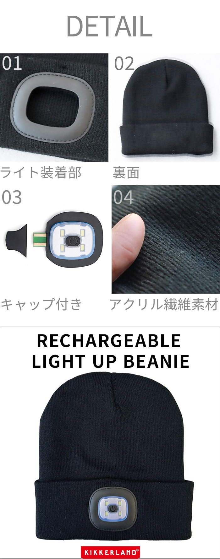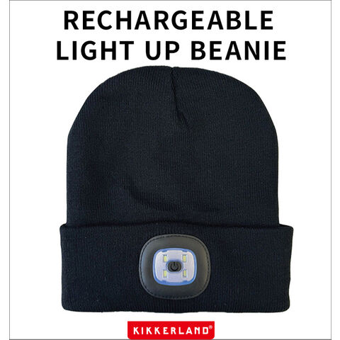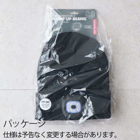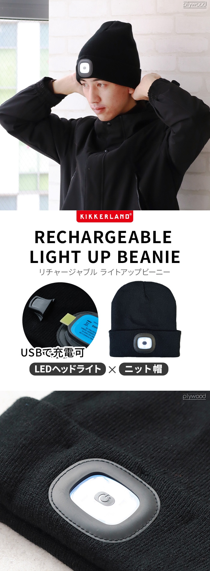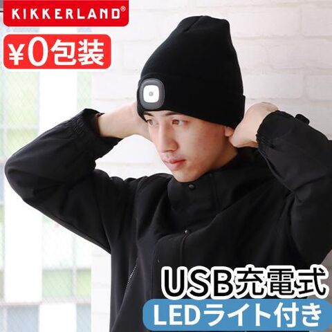 KIKKERLAND RECHARGEABLE LIGHT UP BEANIE ≪KFL68≫ キッカーランド ヘッドライト 充電式 ニット帽 LEDライト付き 帽子 ブラック 黒 フリーサイズ ニットキャップ 3段階 USB充電 夜間 散歩 自転車 災害 メンズ レディース