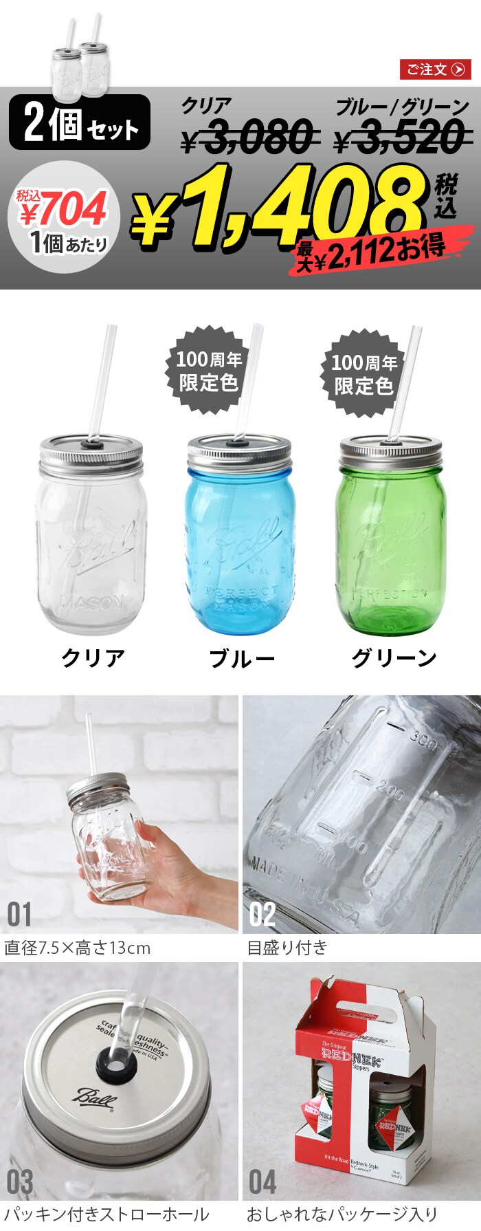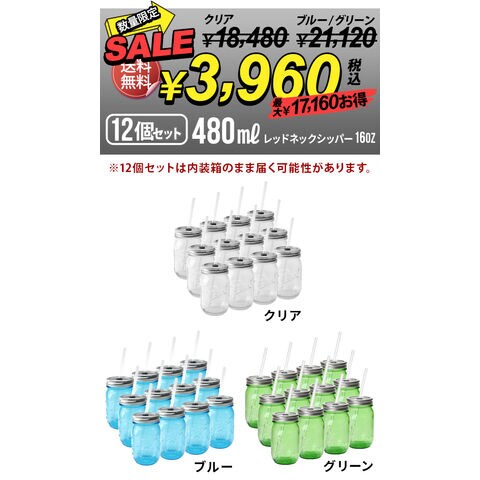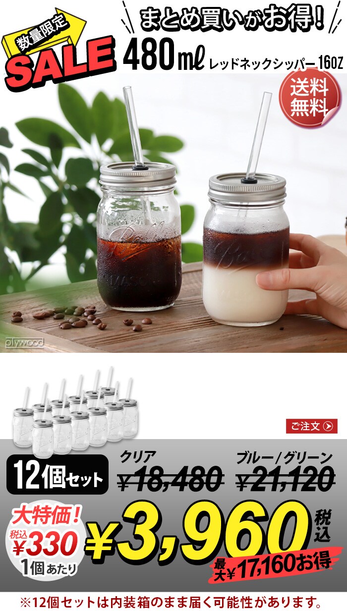 【SALE大特価】正規品 Ball レッドネックシッパー 16oz [12個セット] ≪クリア≫ Rednek Sippers メイソンジャー ドリンクボトル 容器 ストロー付き アメリカ製 ガラス ビン おしゃれ 480ml カフェ カクテルグラス プロテイン タンブラー 送料無料