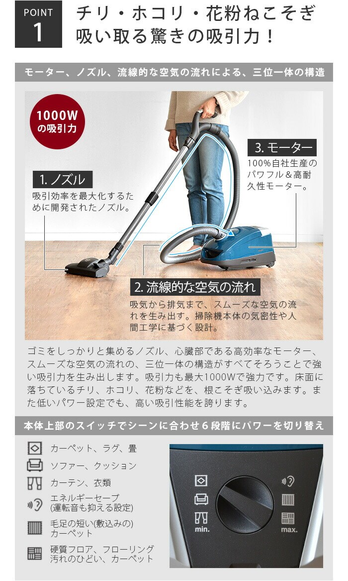 性能・デザイン・耐久性・品質などすべてにおいて妥協のない、究極の掃除機です。