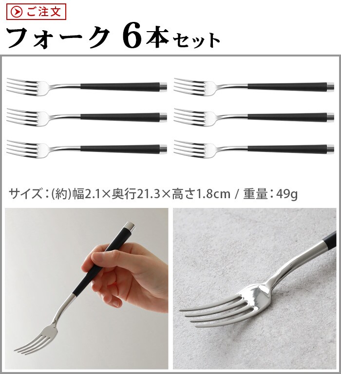 | カトラリーセット:スプーン×1、フォーク×1、テーブルナイフ(木鞘付)×1、コーヒースプーン×1、カトラリーレスト×1 スプーン6本セット:スプーンのみ×6 フォーク6本セット:フォークのみ×6 テーブルナイフ6本セット:テーブルナイフのみ×6 コーヒースプーン6本セット:コーヒースプーンのみ×6 カトラリーレスト6本セット:カトラリーレストのみ×6 |