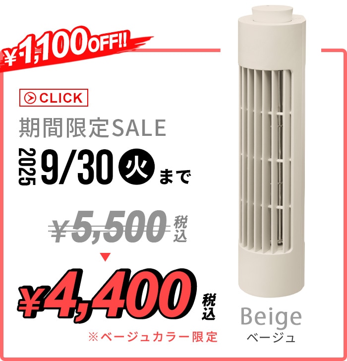 シンプルなデザインで細い形状ながら、広範囲に力強い風を出すことができます。風力は弱・中・強の三段階で、スイッチはわかりやすいダイヤル式。卓上置きの他、背面にはフック穴があり、太さ5mm以内のS字フックなどに引っ掛けることが可能。キッチンや洗面所など、スペースが狭いところでも重宝します。