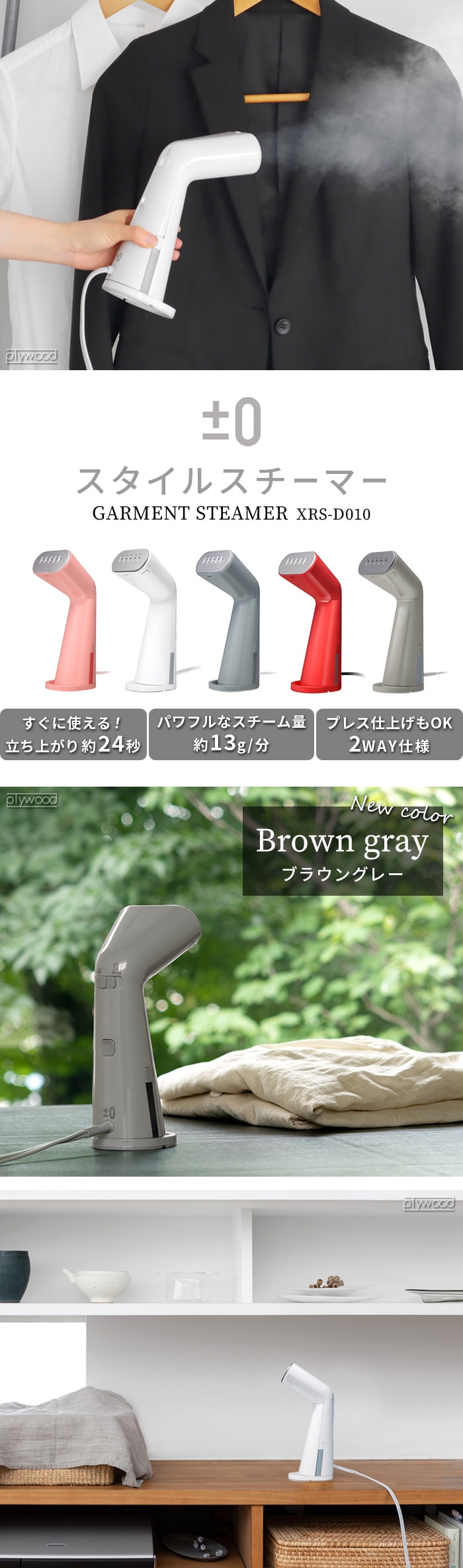 プラスマイナスゼロ スタイルスチーマー ±0 GARMENT STEAMER ≪ブラウングレー XRS-D010≫ スチームアイロン