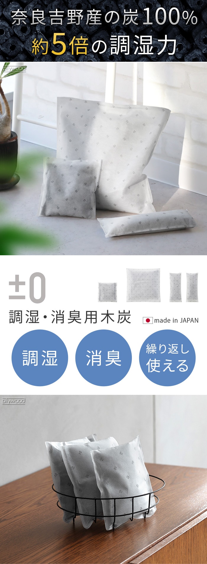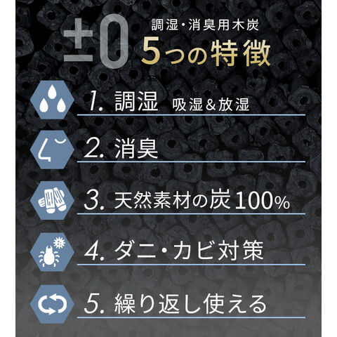 ±0 調湿・消臭用木炭 ≪スクエアS/1個≫ プラスマイナスゼロ 除湿 半永久 繰り返し使える 調湿材 室内用 おしゃれ カビ対策 押入れ クローゼット 部屋 寝室 玄関 靴箱 湿気取り におい対策 脱臭 長持ち 車 本家炭屋