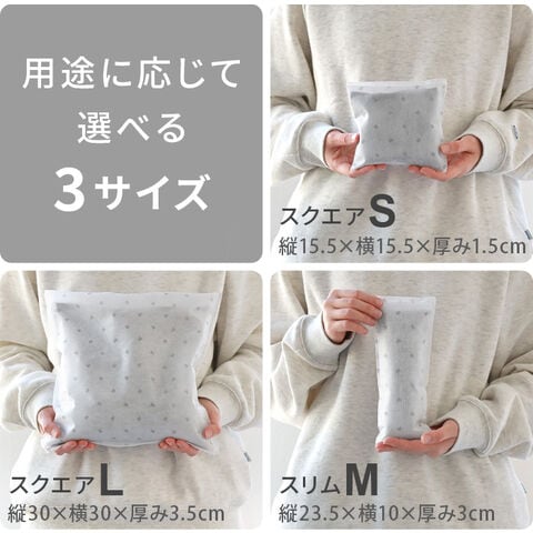 | スクエアS:(約)縦15.5×横15.5×厚み1.5cm スクエアL:(約)縦30×横30×厚み3.5cm スリムM:(約)縦23.5×横10×厚み3cm |