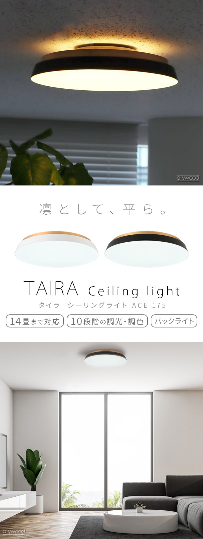 TAIRA シーリングライト ≪ホワイト ACE-175WH≫ スワン電器 天井照明 おしゃれ リモコン付 led アッパーライト 14畳 調光 調色 電球色 昼光色 リビング 寝室 薄型 間接照明 常夜灯 ランプ インテリア