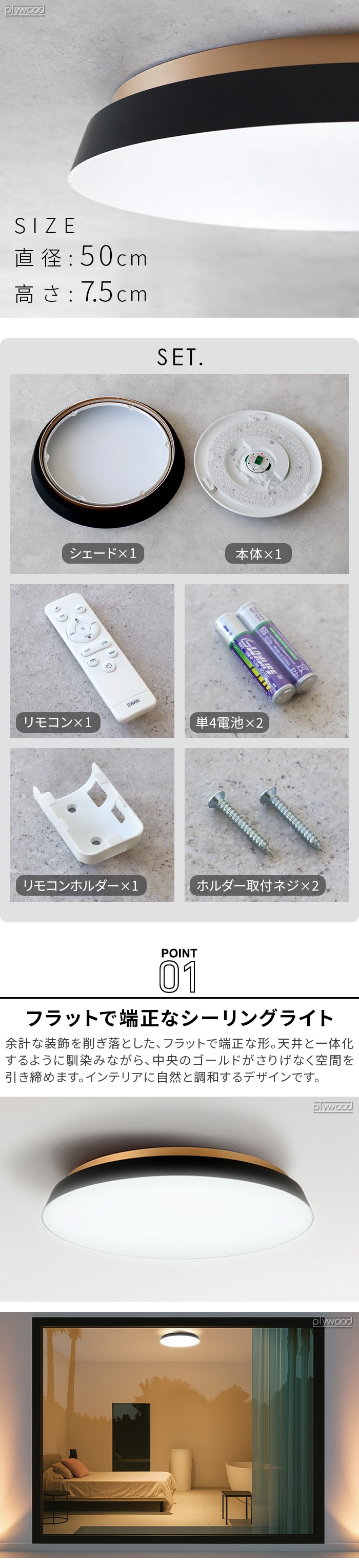 10段階の調光調色が可能な シーリングライト 余計な装飾を削ぎ落とした、フラットで端正なシーリングライト。天井と一体化するように馴染みながら、中央のゴールドがさりげなく空間を引き締めます。インテリアに自然と調和する美しいデザインです。メインライトの他に、天井から照らすバックライト付き。夜間のリラックスタイムや、就寝前のやさしい灯りとして◎。メイン・バックライト共に10段階の調光調色が可能です。 |