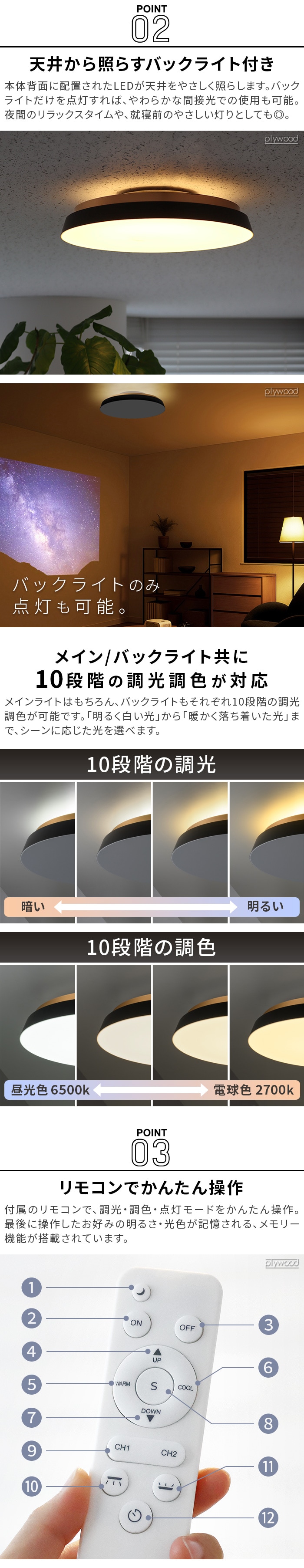 | 調光10段階 調色10段階 常夜灯モード アッパーライト プルレス機能 メモリー機能 |