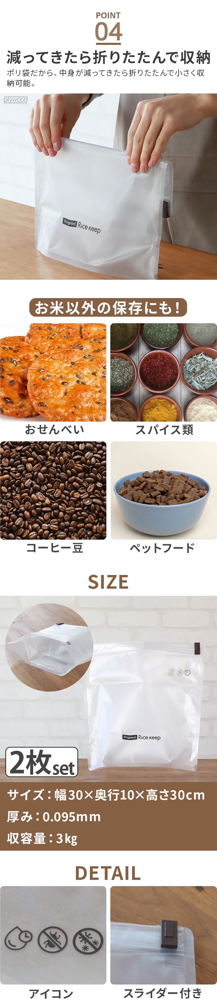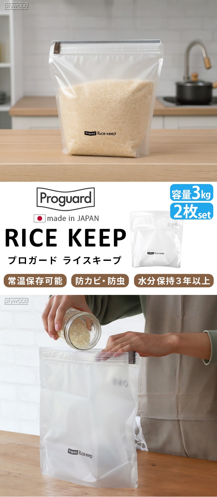 プロガード ライスキープ Proguard Rice Keep 2枚セット お米 常温保存 虫が湧かない カビ防止 ライスキーパー ジッパーバッグ ジッパー付き保存袋 チャック付きポリ袋 ジップ袋 お菓子 おせんべい ペットフード 収納