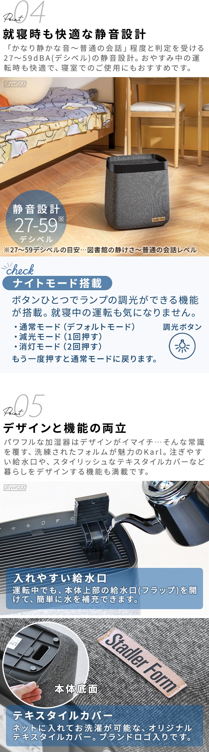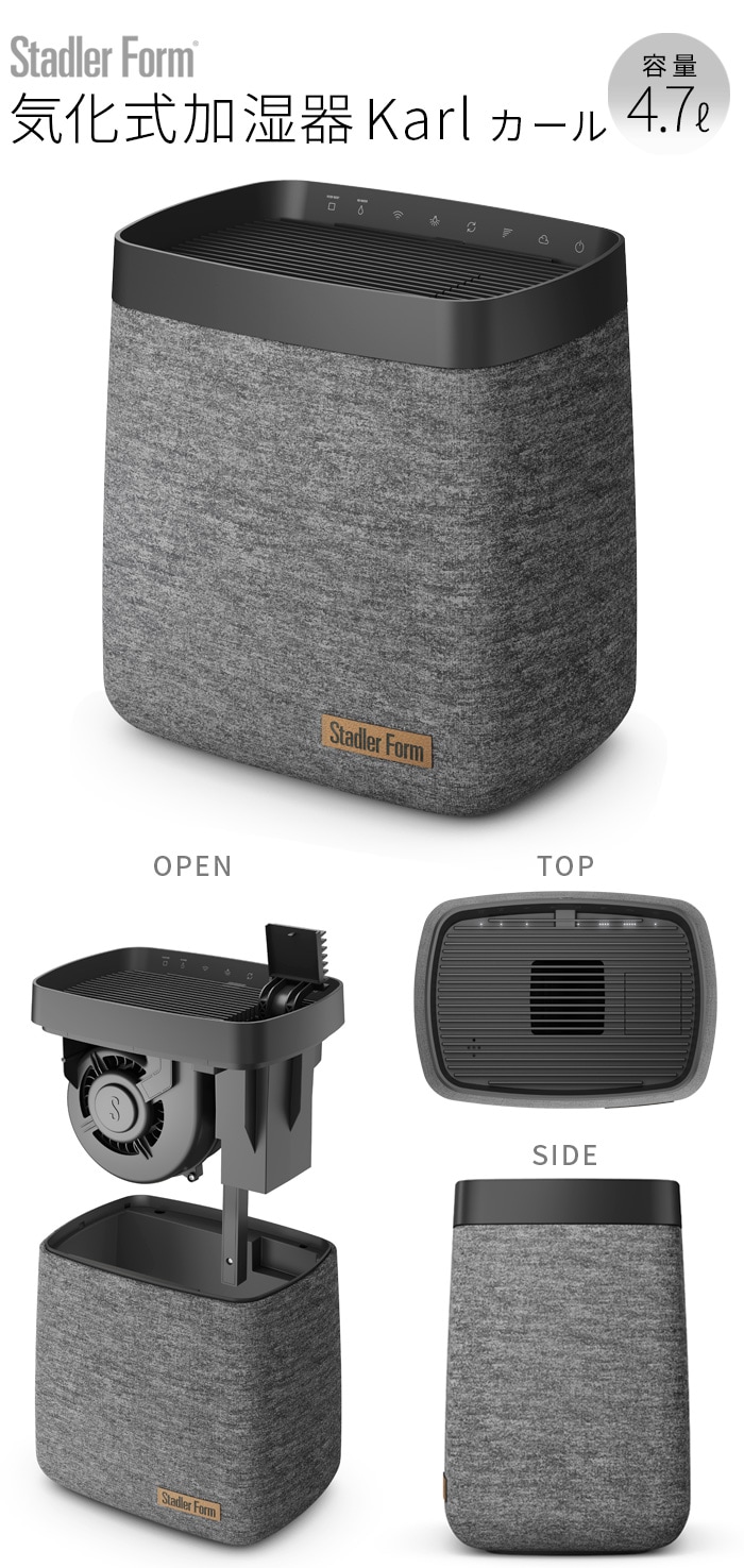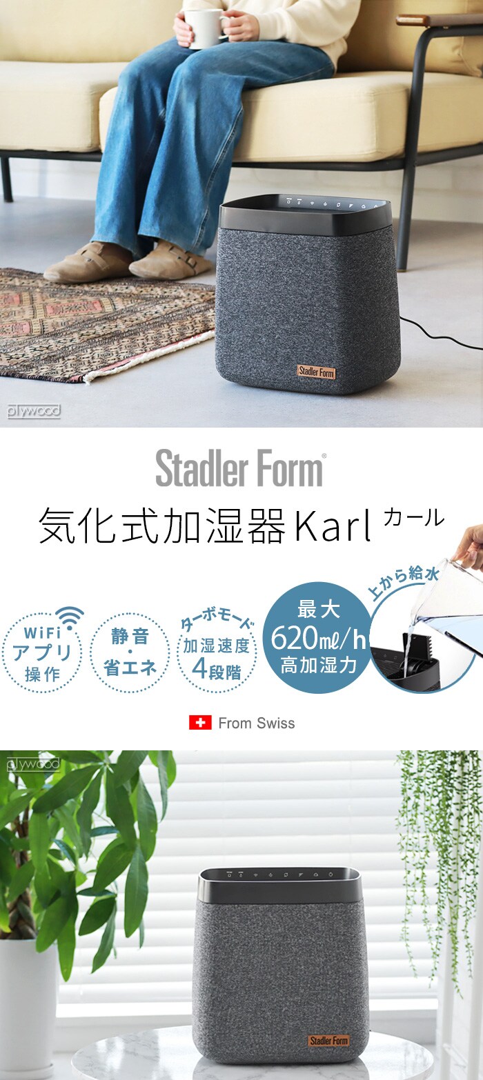 スタドラフォーム カール Stadler Form Karl 気化式加湿器 除菌 ハイパワー 静音 遠隔操作 お手入れ簡単 おしゃれ Wi-Fi対応 自動湿度調節 リビング オフィス メンズライク かっこいい