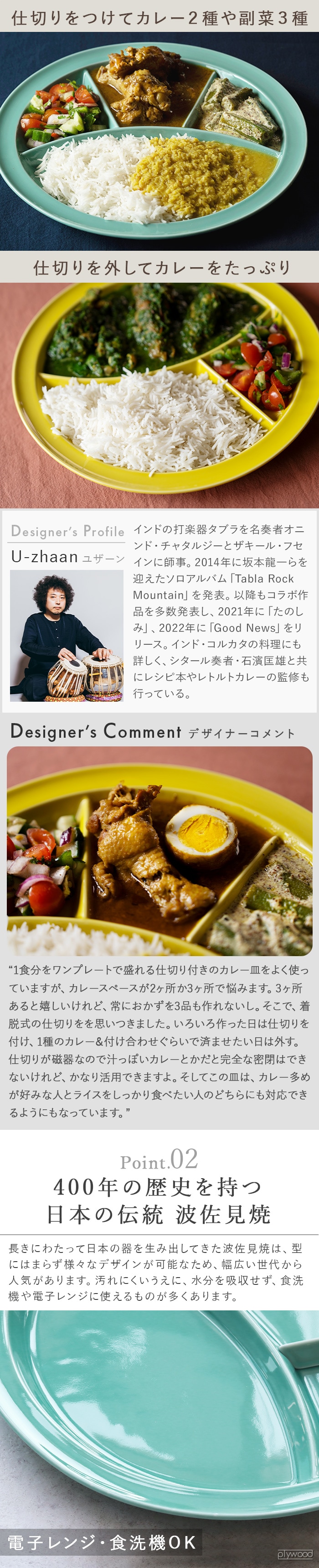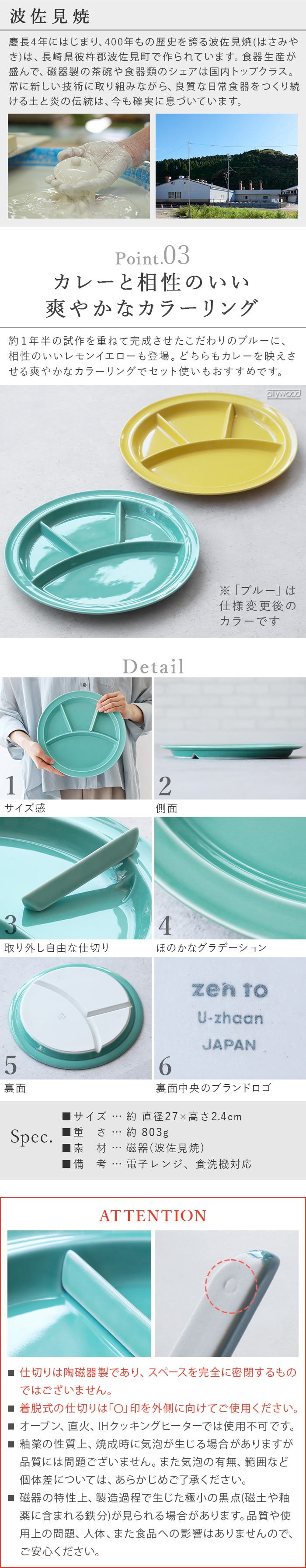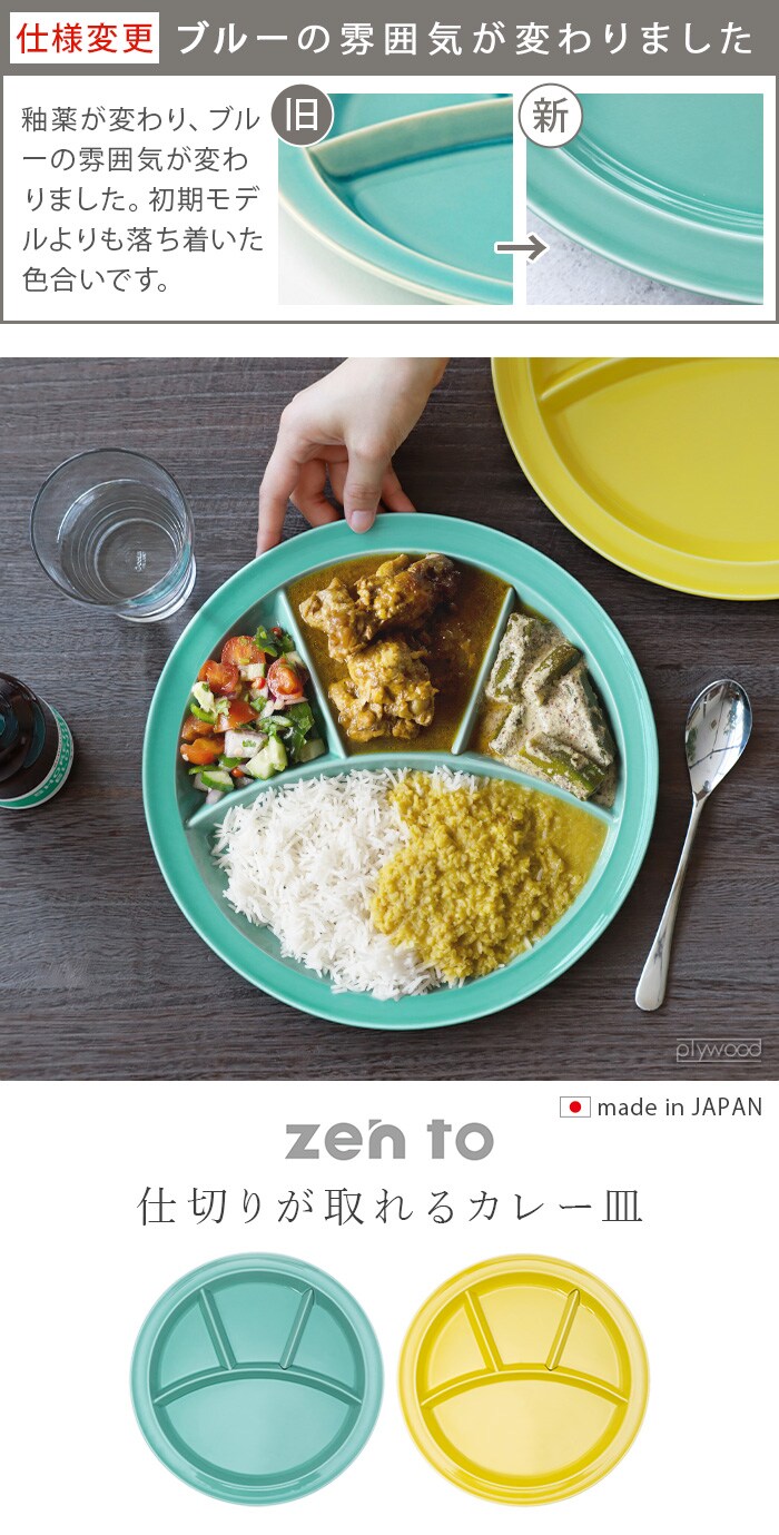 zen to ユザーン 仕切りが取れるカレー皿 ≪イエロー 2125≫ 波佐見焼 日本製 おしゃれ 大皿 陶磁器 カレープレート デザイン 食器 磁器 お皿 仕切り 電子レンジOK 食洗機OK 和食器 洋食器 おうちごはん お家カフェ Curry Plate zento U-zhaan