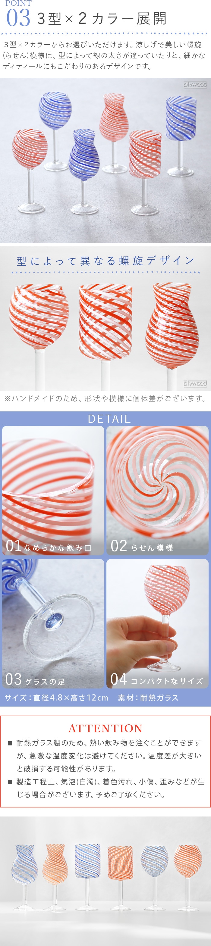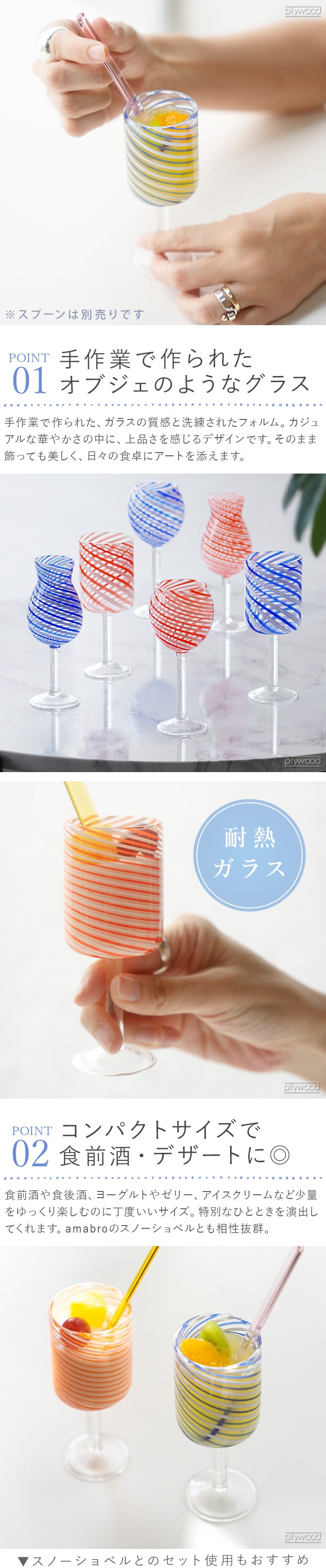 アマブロ スパイラル グラス amabro SPIRAL GLASS ≪ブルーB≫ 食前酒 デザートカップ 耐熱ガラス 足つき ガラス コップ カジュアル かわいい コンパクト ミニパフェ ミニグラス ギフト プレゼント