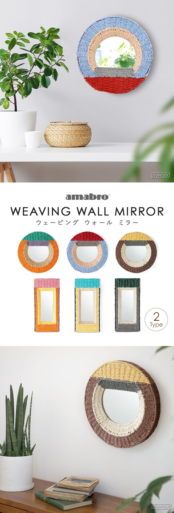 アマブロ ウェービング ウォール ミラー amabro WEAVING WALL MIRROR ≪サークルC 2100≫ 丸 おしゃれ 小さい 吊り下げ 壁掛け鏡 インテリア ナチュラル ディスプレイ 横向き 縦向き ギフト かわいい 新生活 一人暮らし 賃貸