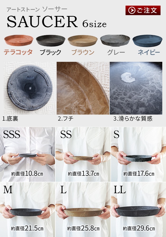 こちらは「ソーサー Sサイズ」です。 植木鉢本体は別売りですのでご注意下さい。 |