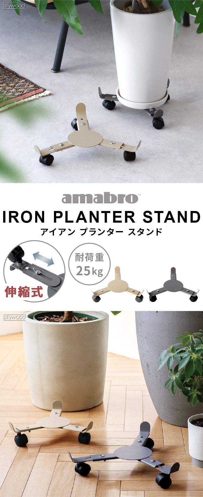 アマブロ アイアン プランター スタンド amabro IRON PLANTER STAND ≪グレー≫ 室内 キャスター付き 台車 おしゃれ サイズ調整 伸縮式 鉢植え台 鉢置き 鉢スタンド 観葉植物 プランター台 移動 ガーデニング シンプル インテリア アートストーン対応