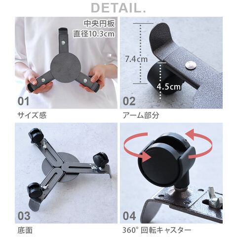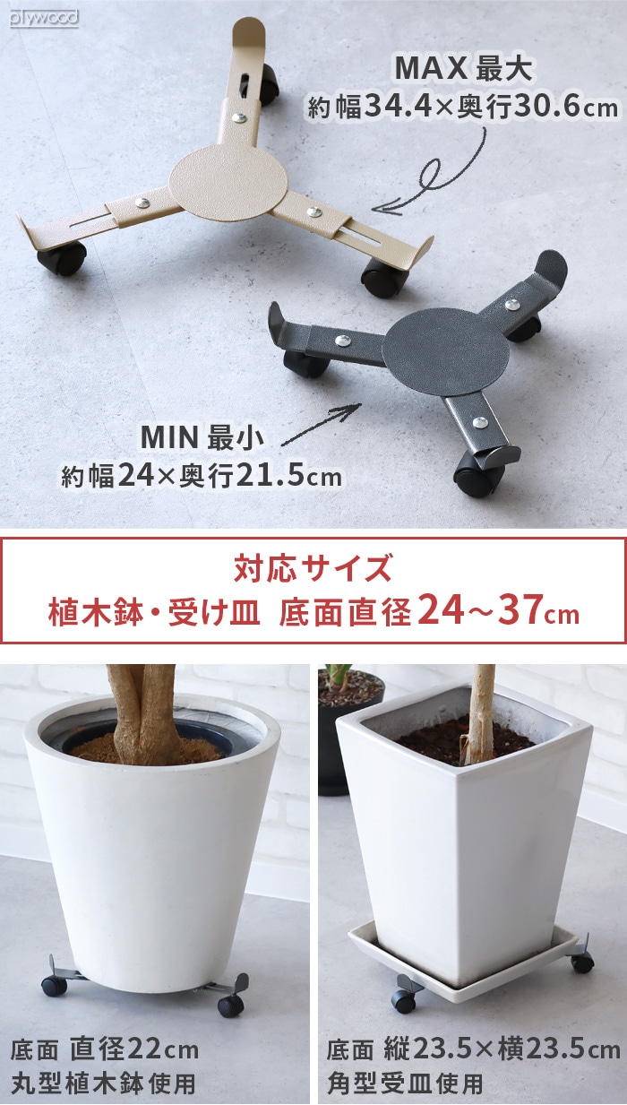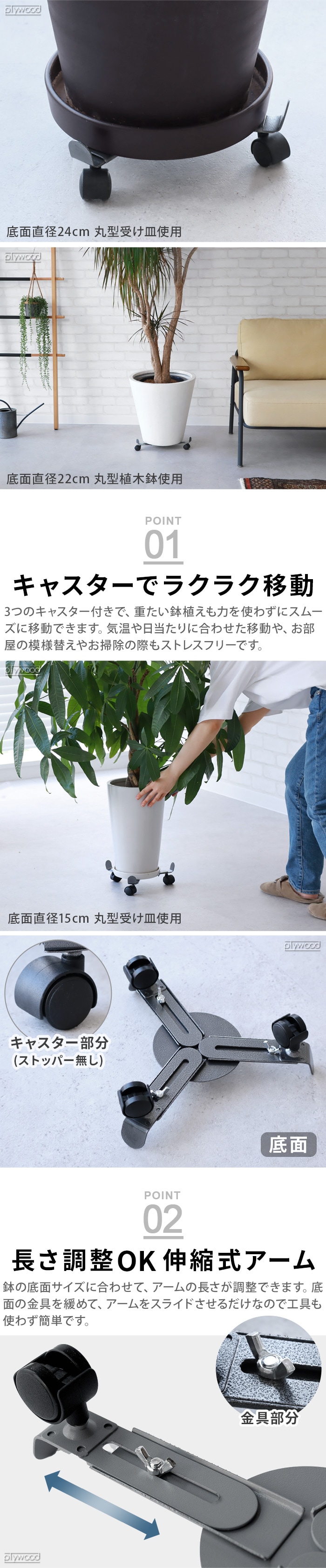 | キャスター付き(ストッパー無し) プランターのサイズに合わせてアジャスターでサイズ調整可能。金具でしっかり固定してください。(工具不要) |