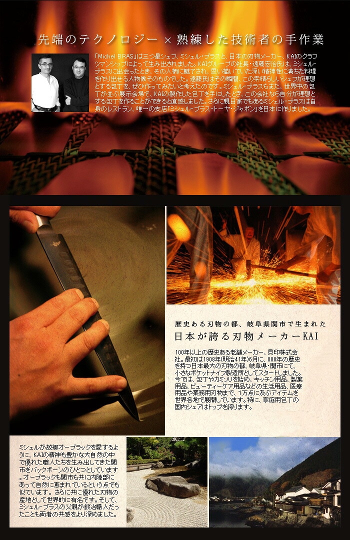 フランス料理界のみならず、あらゆる料理界を代表するシェフ、ミシェル・ブラスと、100年以上の歴史ある老舗メーカーで家庭用包丁の国内シェアトップを誇る貝印の強力コラボにより誕生したキッチンハサミです。