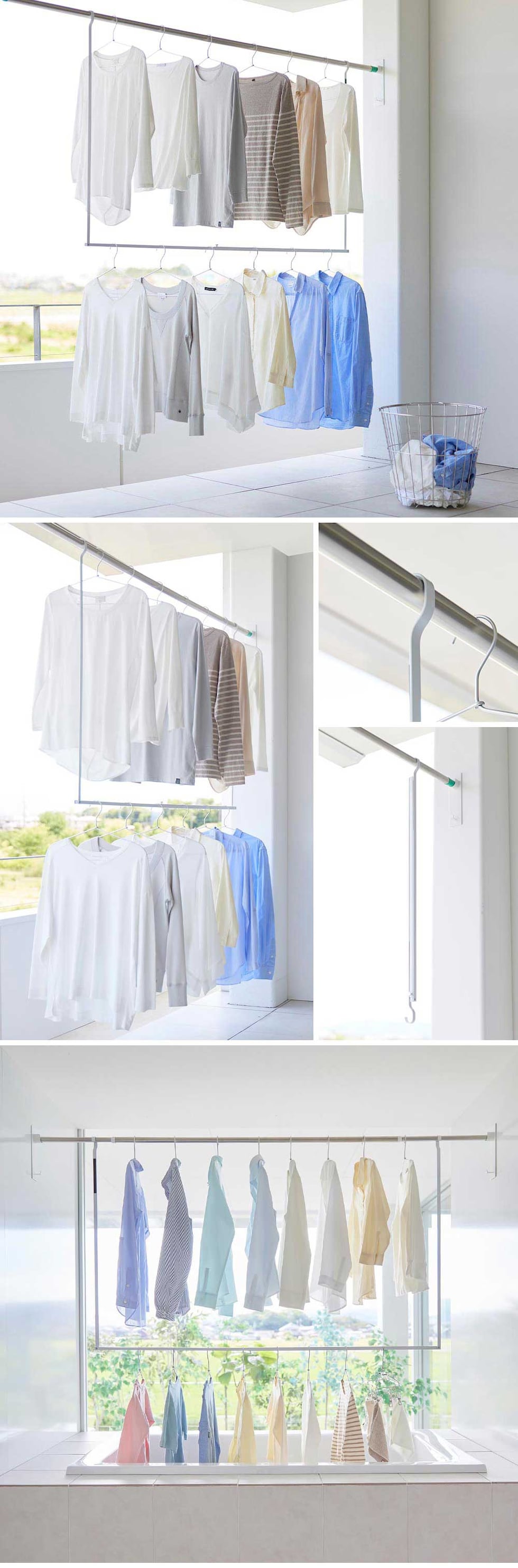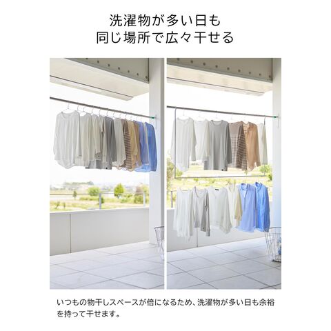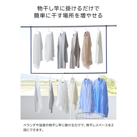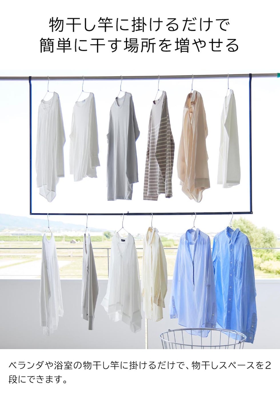 タワー 山崎実業 tower 折り畳み伸縮物干し2段ハンガー ≪ブラック 1292≫ YAMAZAKI 物干し竿 引っ掛けるだけ 上下 2段 長さ調節可能 スリム 洗濯物干し クローゼット収納 デッドスペース 有効活用 省スペース 衣類収納 ギフト